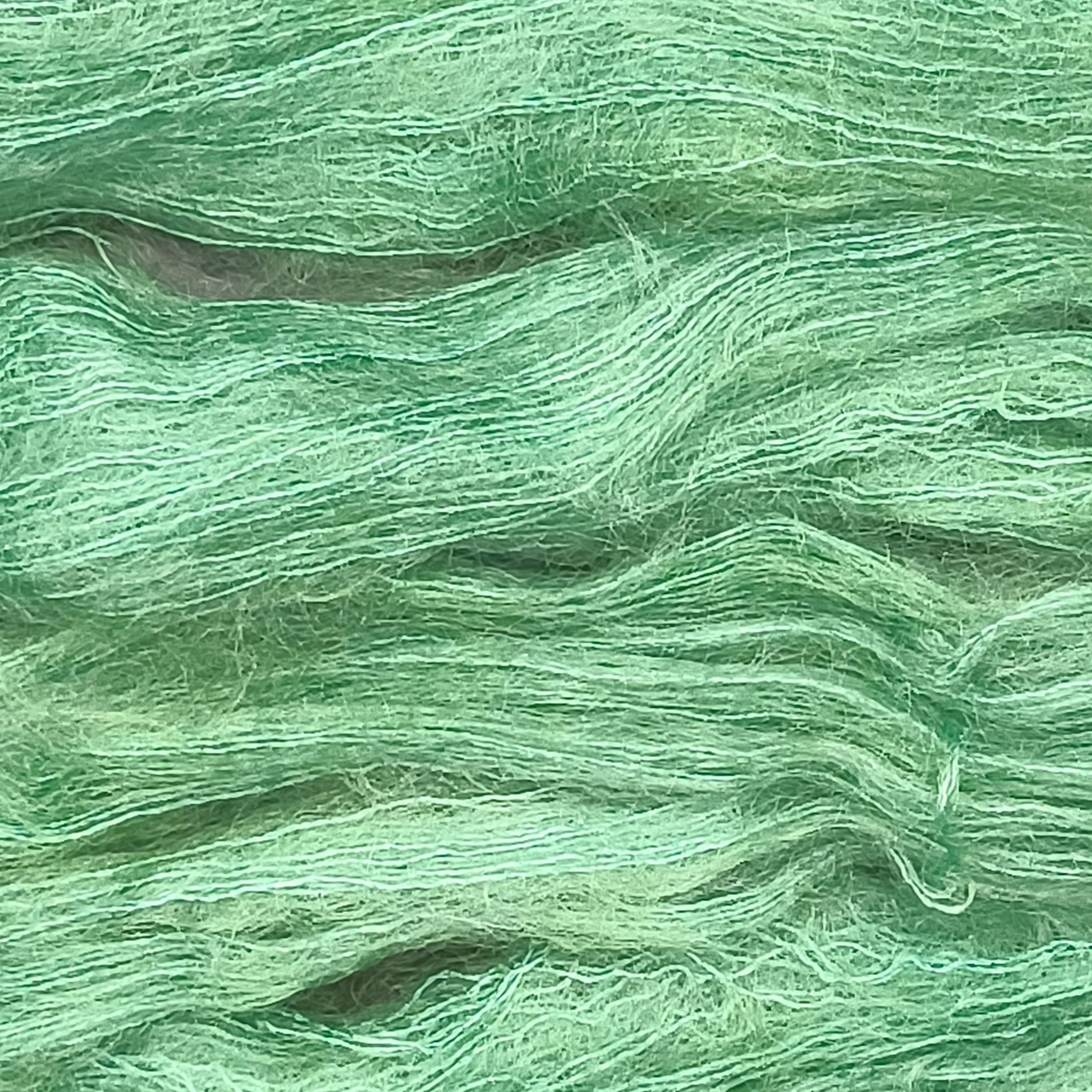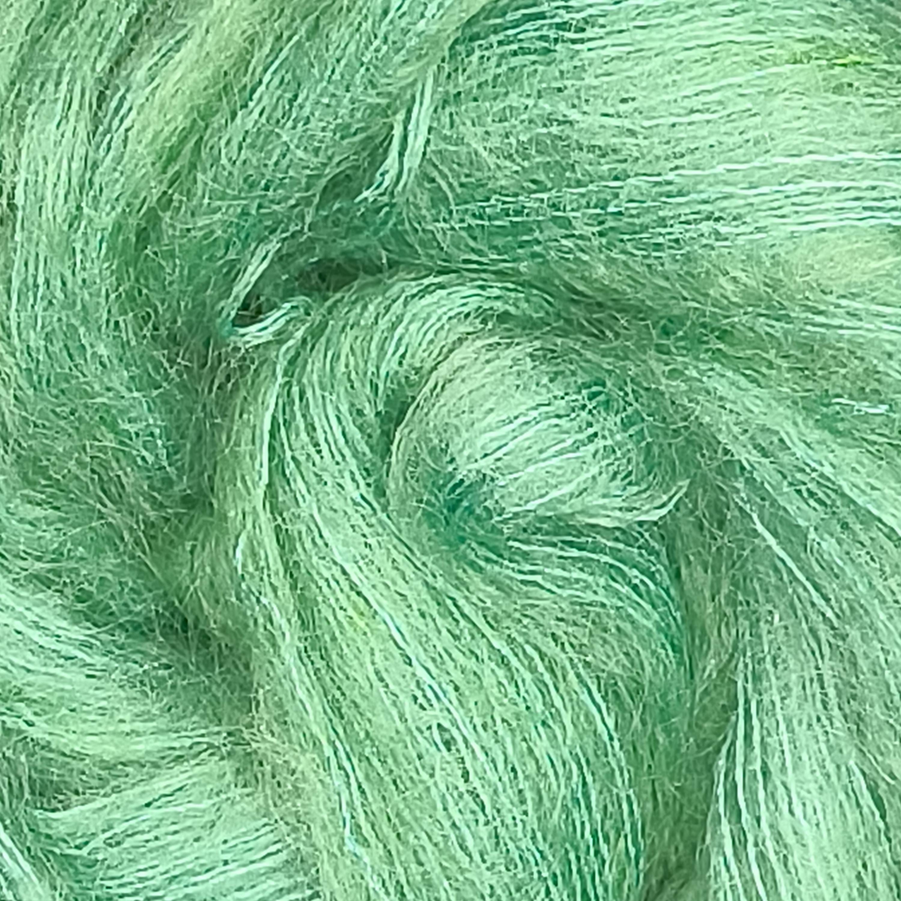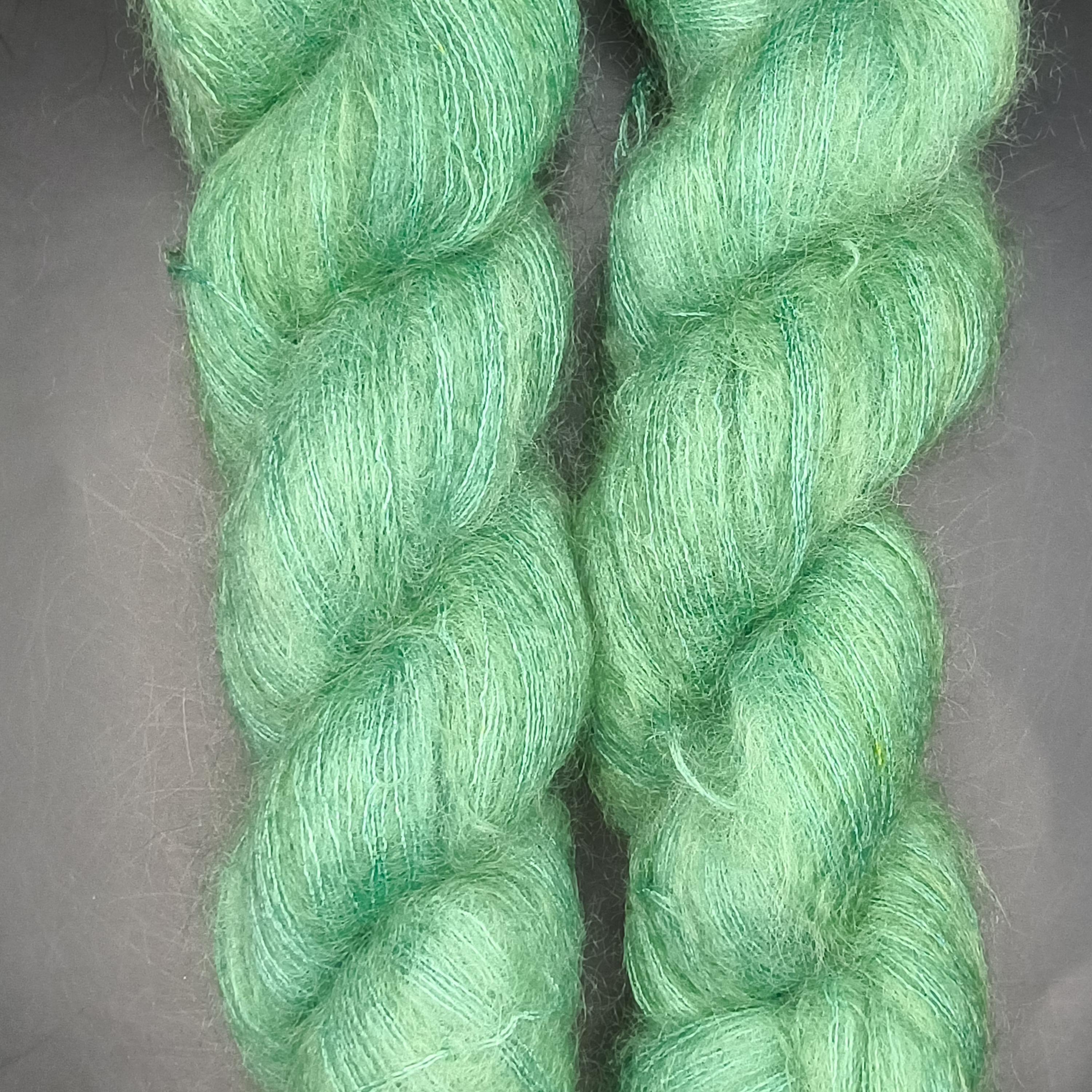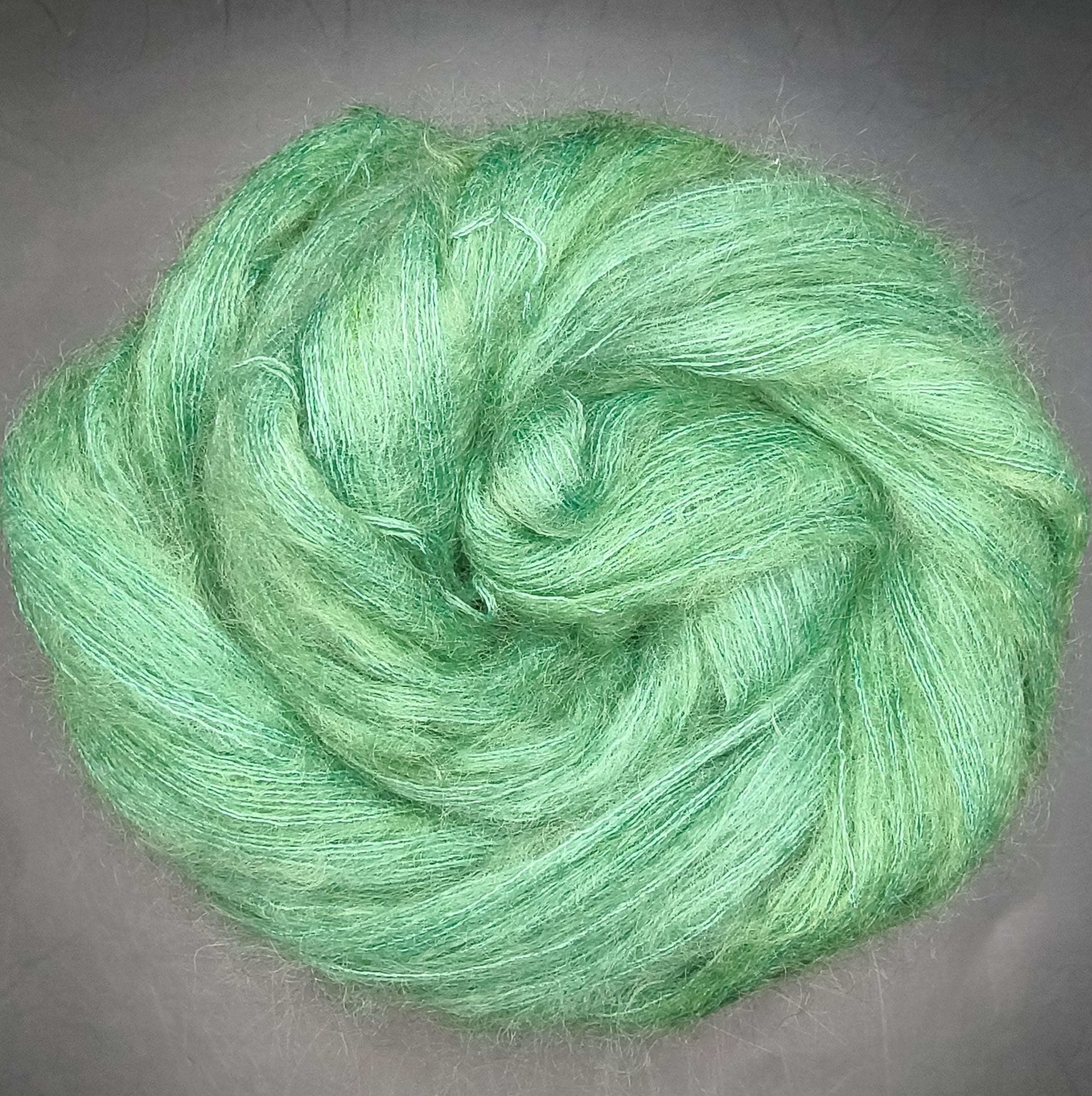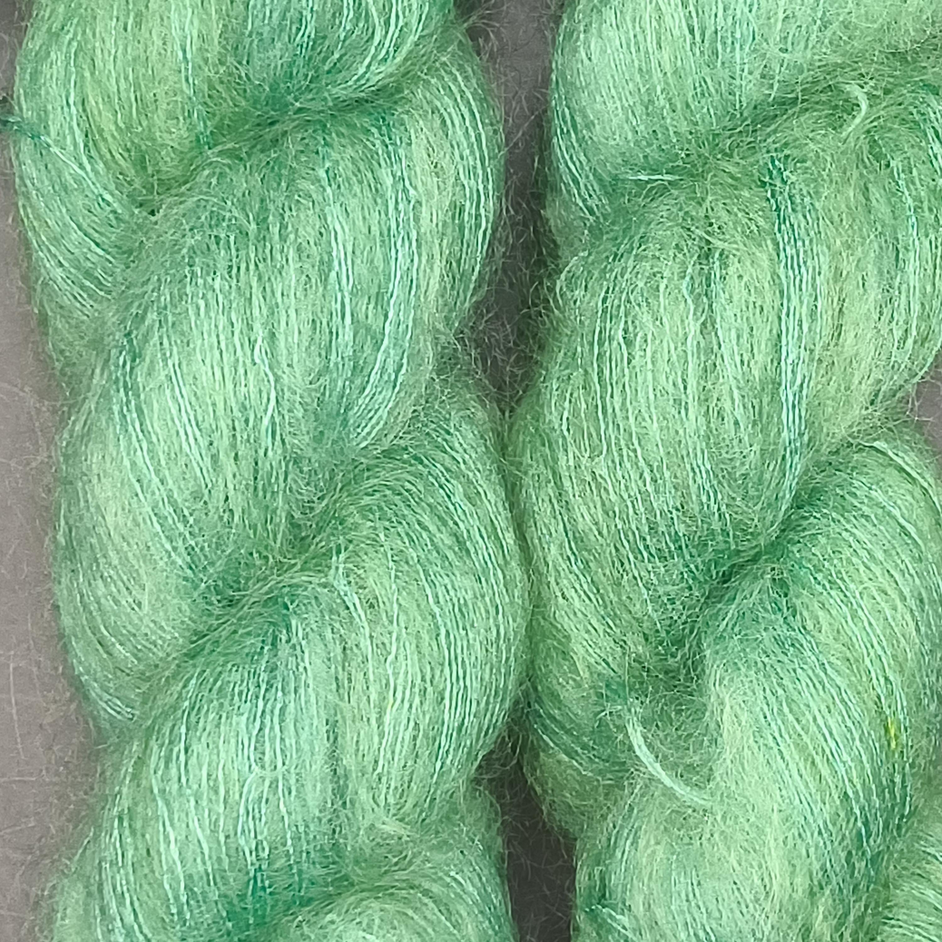 72% Kid Mohair, 28% Mulberry Silk, Single Ply, Lace Weight. 50g 459 yards.
