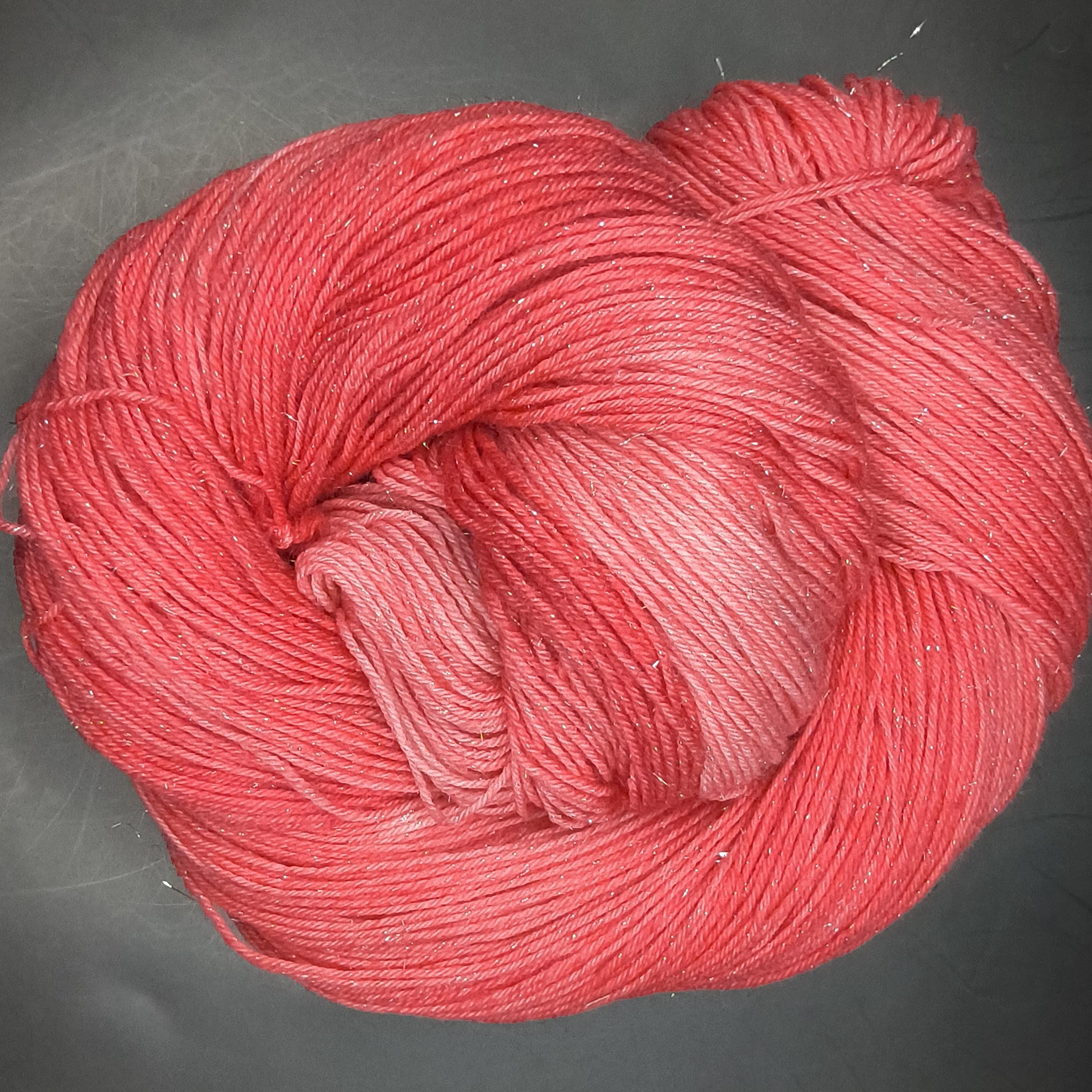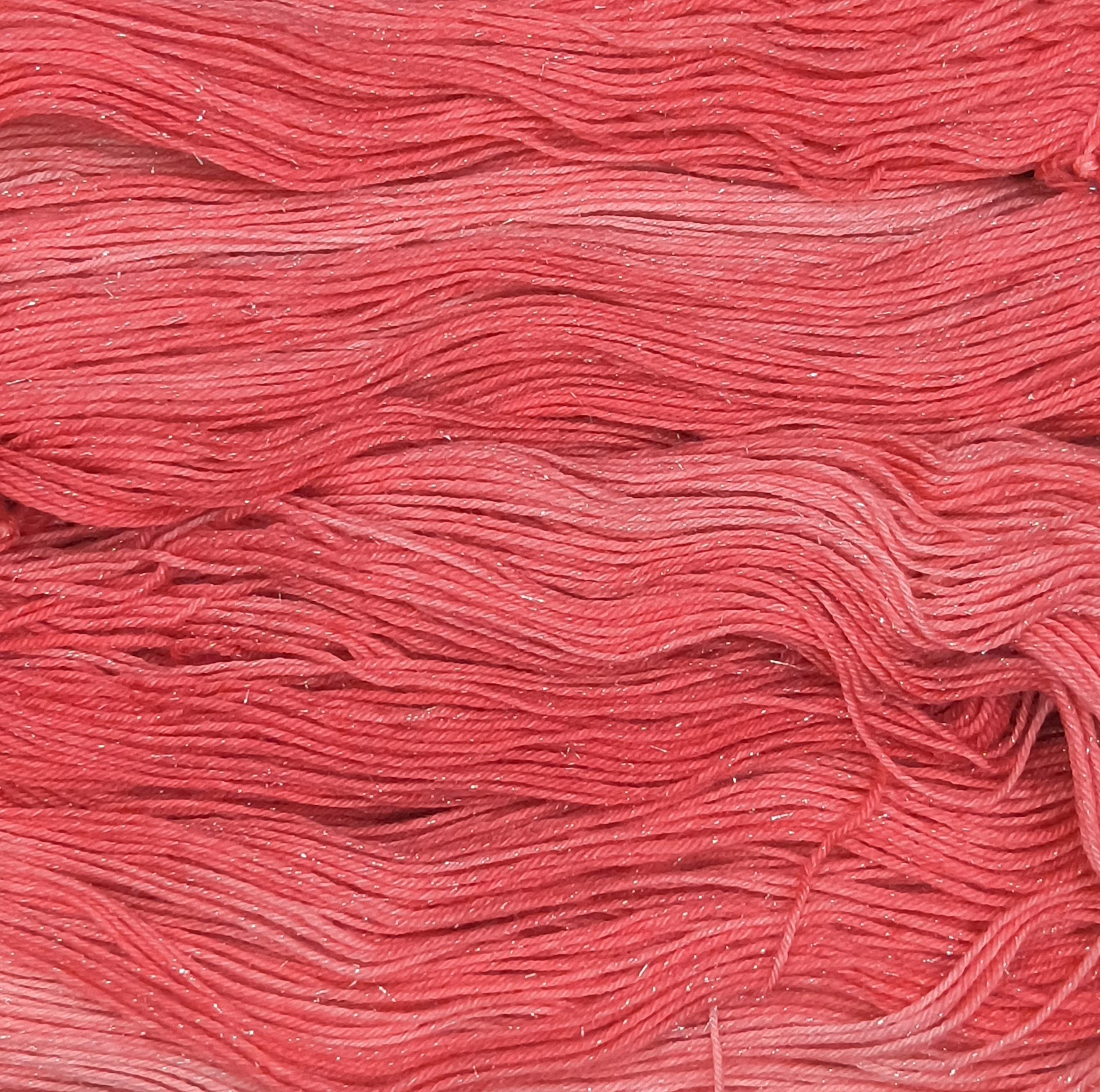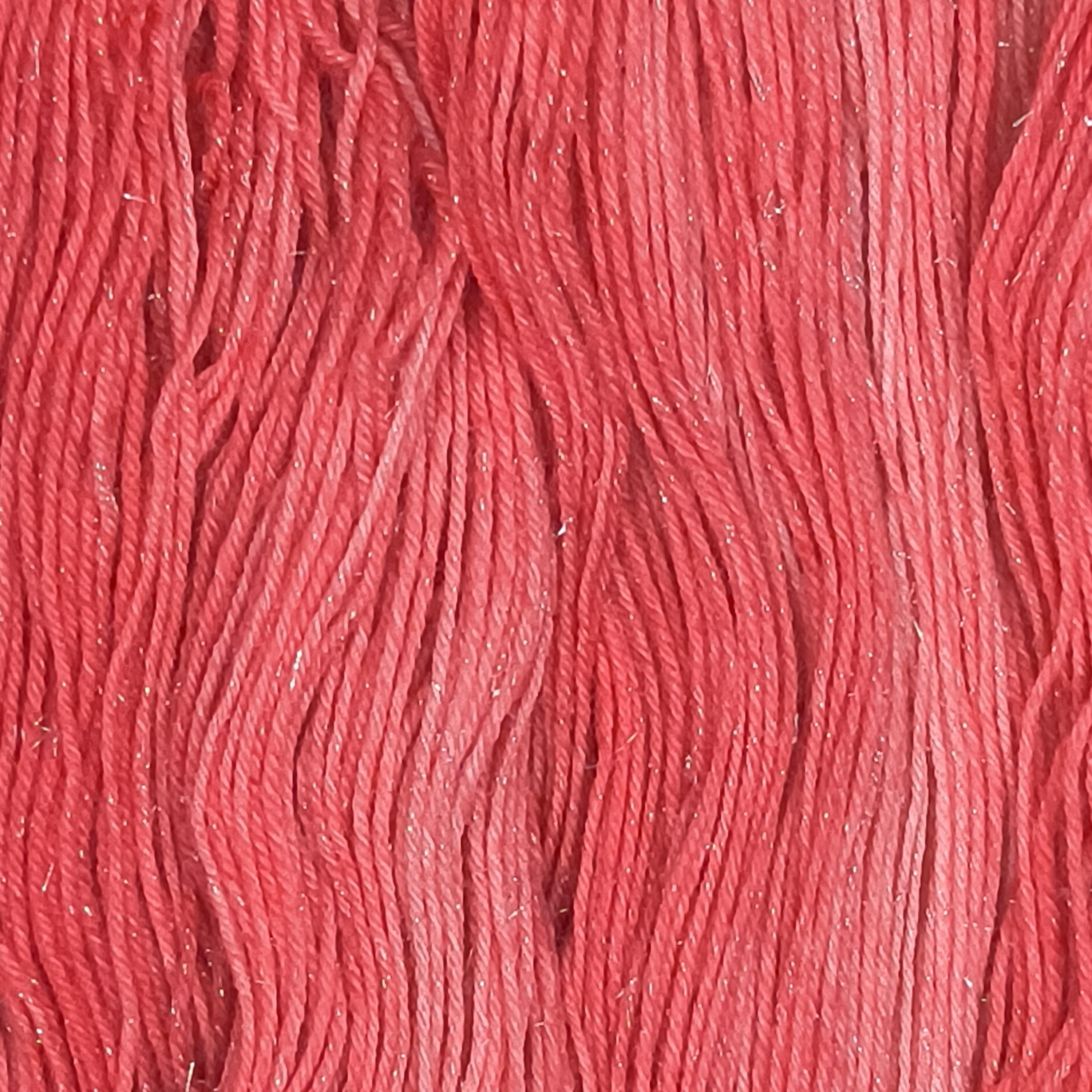 Love Shine is a red tonal over glittery silver stellina wound throughout the yarn.