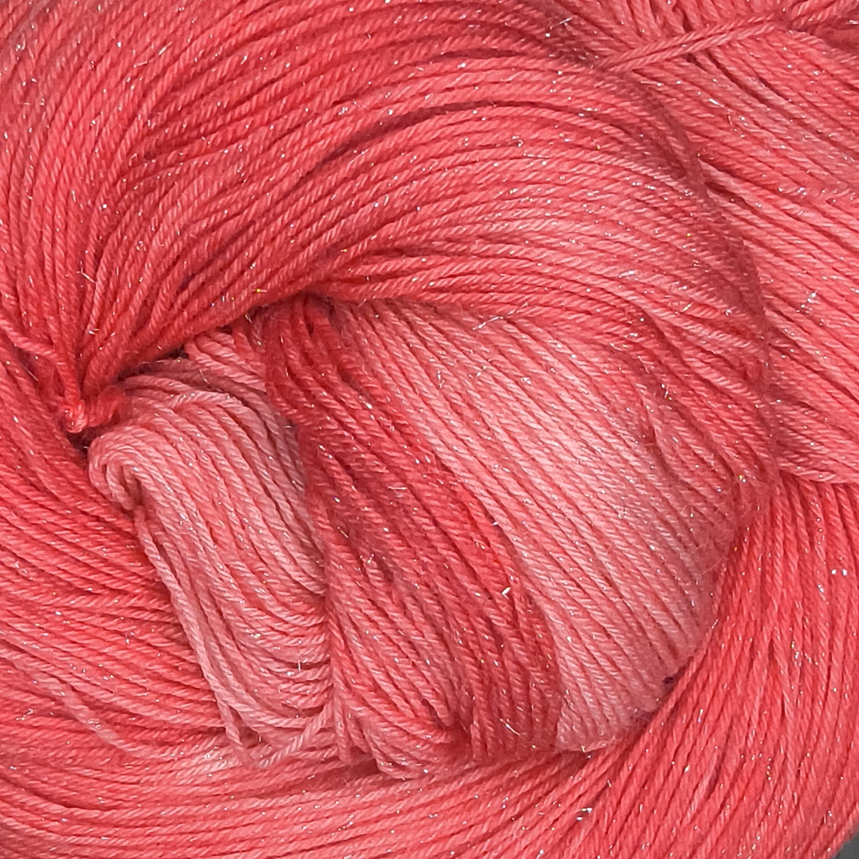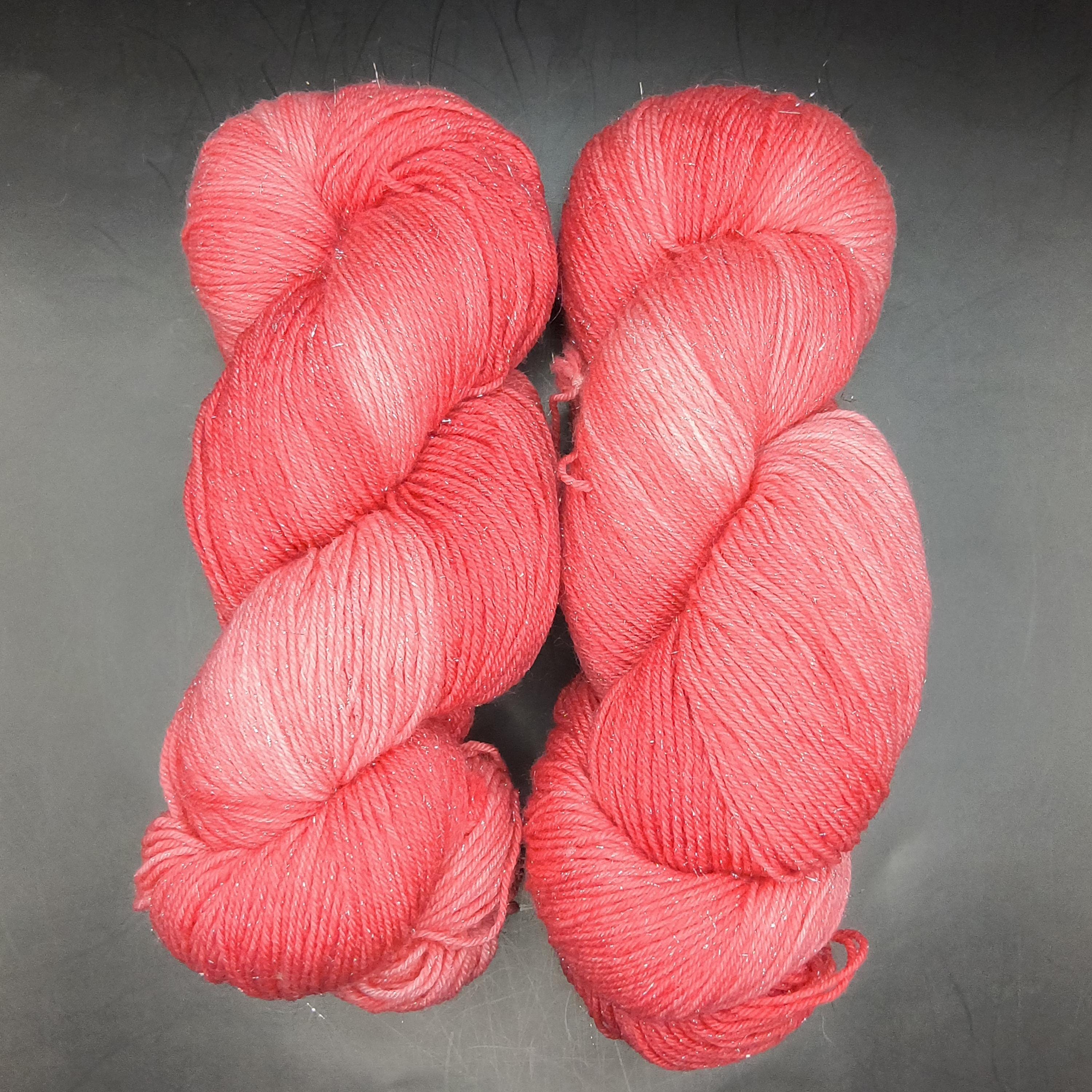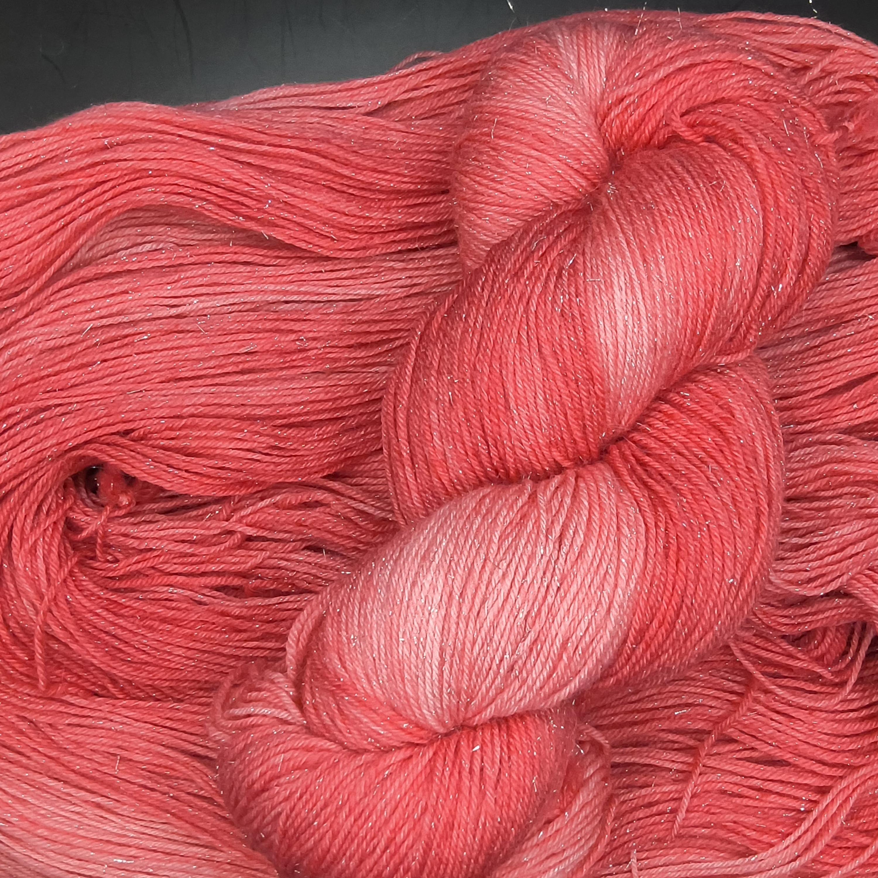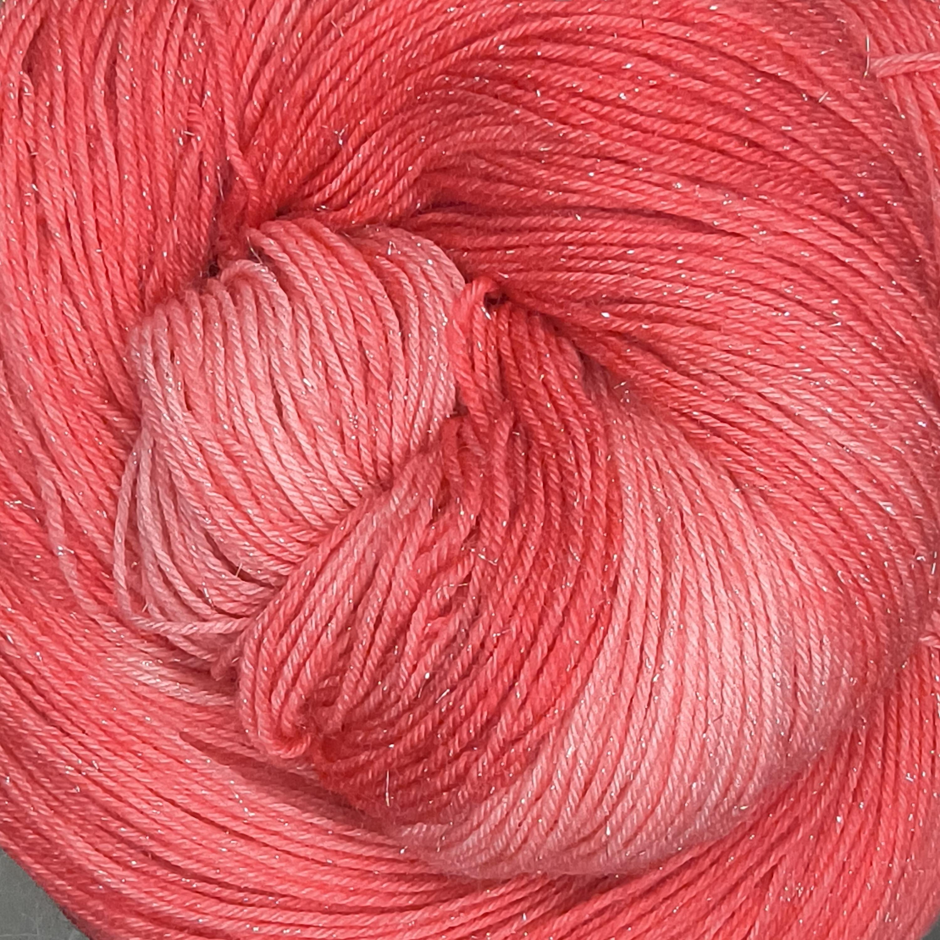Love Shine is a red tonal over glittery silver stellina wound throughout the yarn.